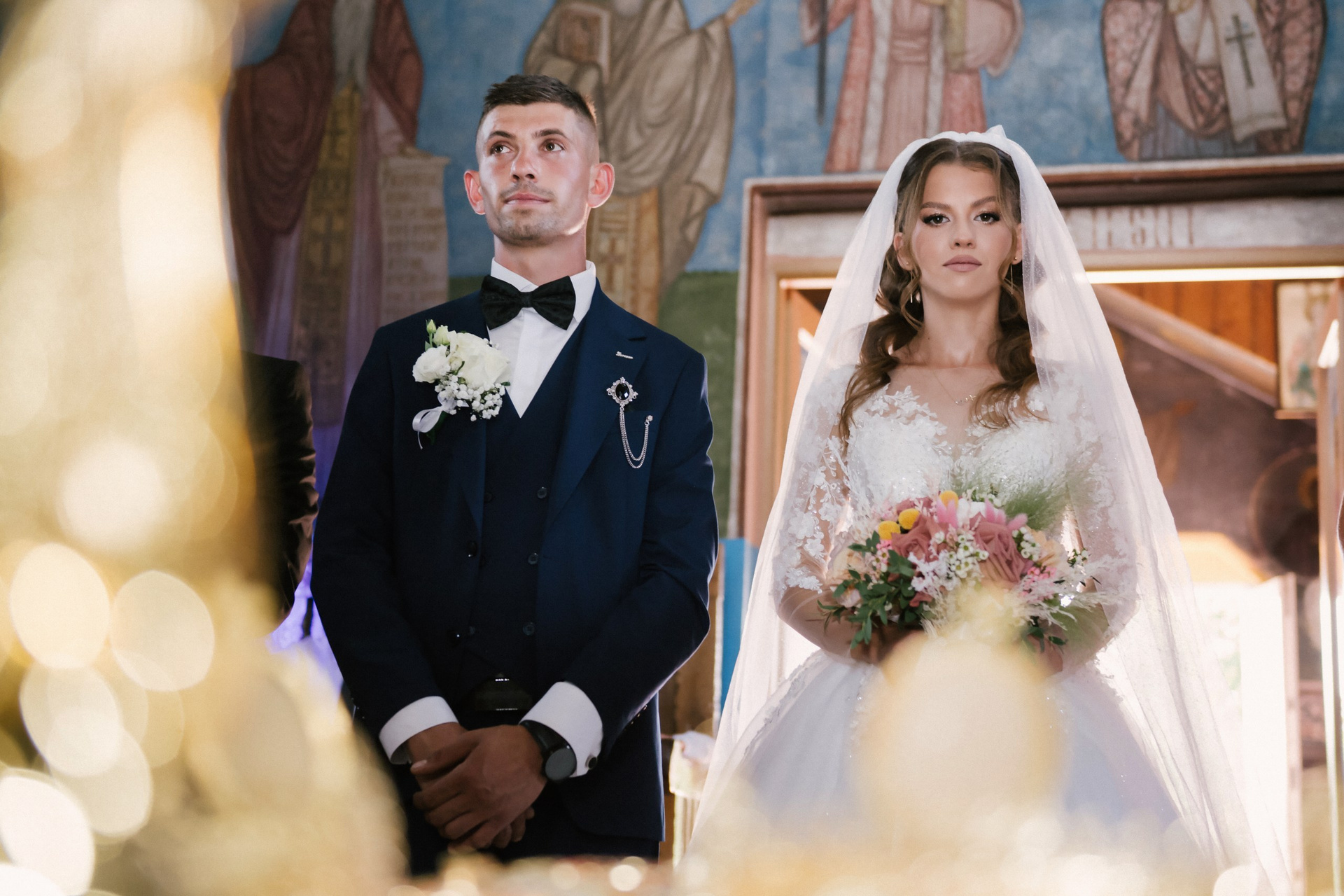 Alături de familie, prieteni și de nașii mirilor, Andrei și Georgiana au trăit o ceremonie religioasă plină de emoție.